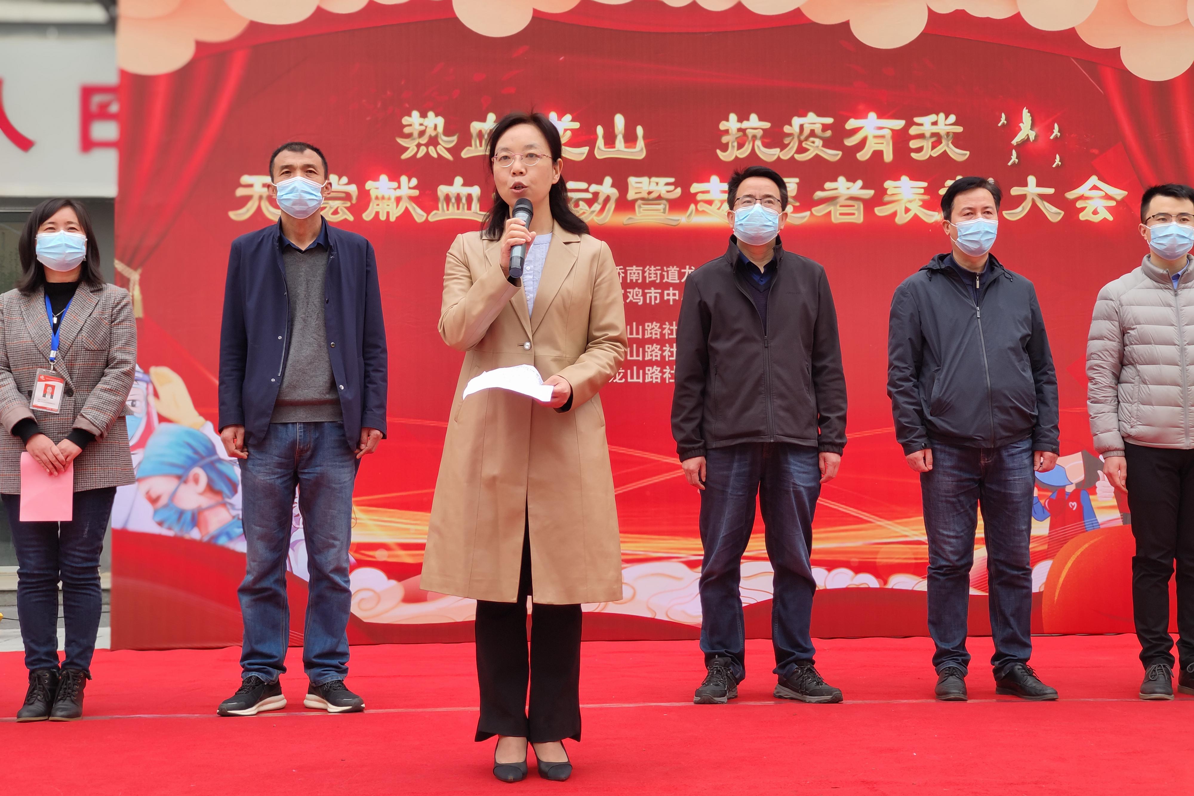 4月16日上午,由宝鸡渭滨区龙山路社区组织的“热血龙山 抗疫有我”无偿献血暨志愿者表彰活动在社区广场顺利举行,社区居民和志愿者参加活动。