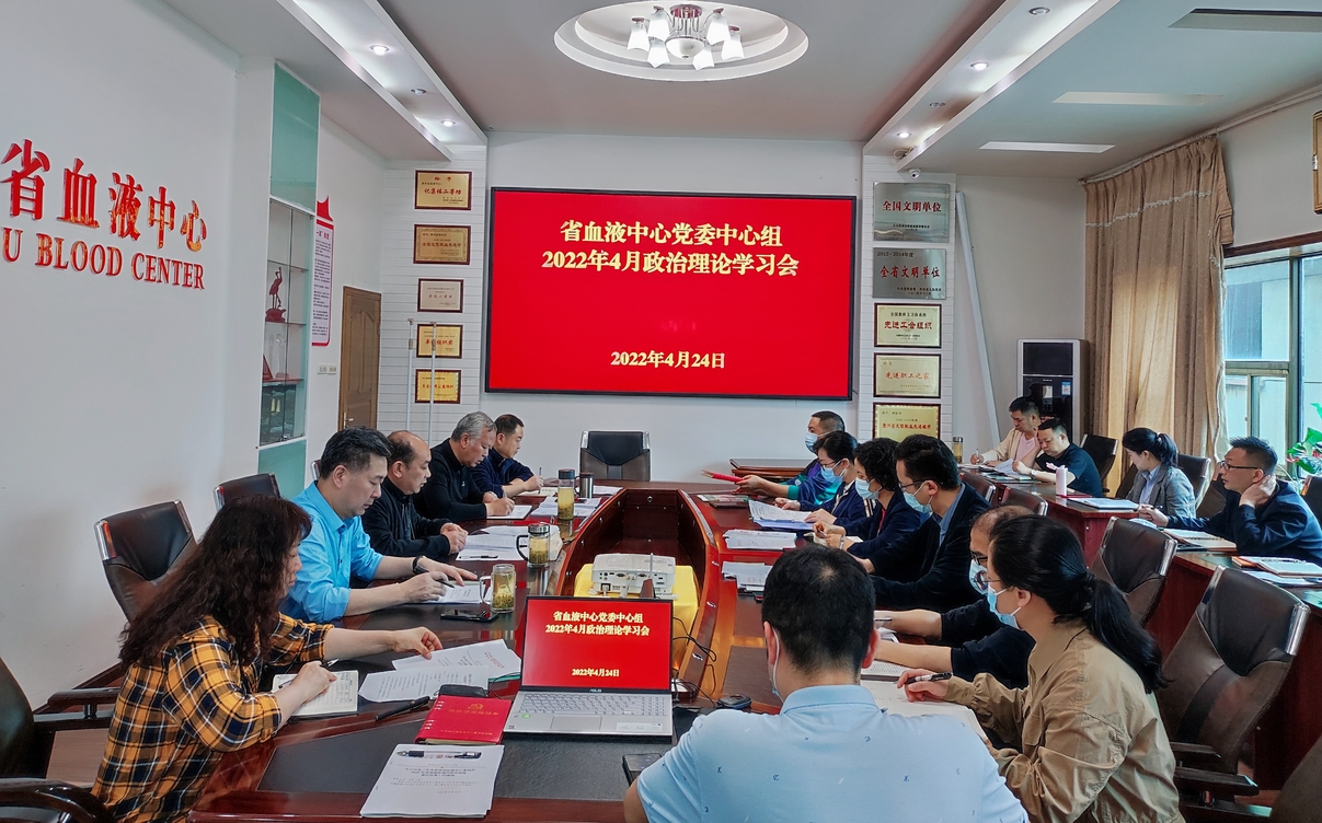 4月24日,贵州省血液中心举行党委中心组2022年4月政治理论学习会,学习贯彻习近平总书记在海南考察时的重要讲话精神,传达学习国家安全相关法律法规,结合实际安排部署2022年党的建设、党风廉政建设、采供血业务等工作。中心党委书记朱思刚主持会议并讲话,中心领导班子成员出席会议。