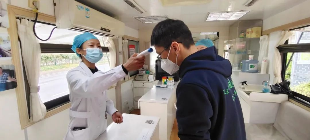 三是献血前做好健康征询和检测。对每一位献血者测量体温。严格执行“四检一带”,并询问近期有无中高风险地区旅居史和发热、咳嗽、呼吸不畅等症状。