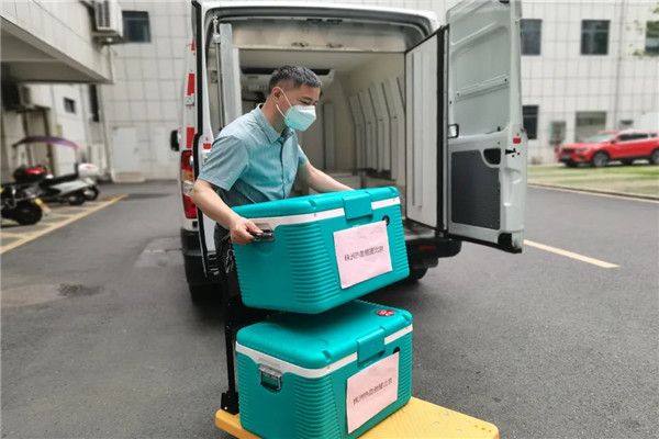 4月27日,在湖南省卫健委的统一部署下,株洲市中心血站将一批爱心“热血”打包装车运往省血液中心,它们将和省内其他市州的爱心血液一同驰援北京,共同抗击疫情。