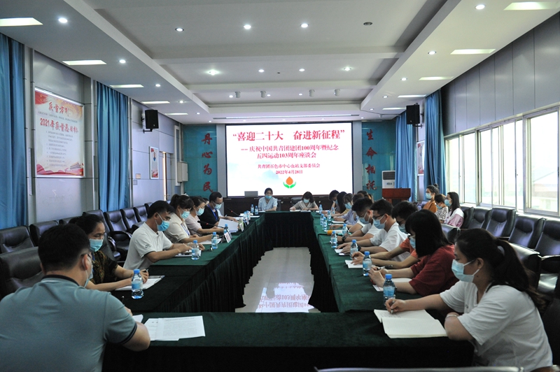 为喜迎二十大,庆祝建团100周年,百色市中心血站共青团支部在4月28日召开“喜迎二十大 奋进新征程”庆祝中国共青团建团100周年暨纪念五四运动103周年座谈会,血站领导班子、党支部委员、党员代表、民革党员代表、青年团员参加会议。
