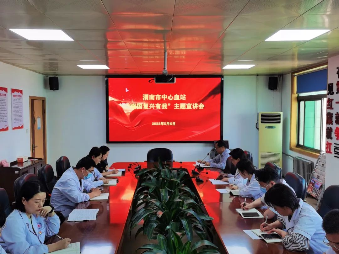 今年将迎来党的二十大,根据中共渭南市委宣传部《关于征集开展“强国复兴有我”群众性主题宣传教育活动线索的通知》文件要求,5月6日下午,渭南市中心血站组织开展“筑梦新时代 敢担当 有作为”主题宣讲活动。血站领导、科级干部及党员代表参加活动。