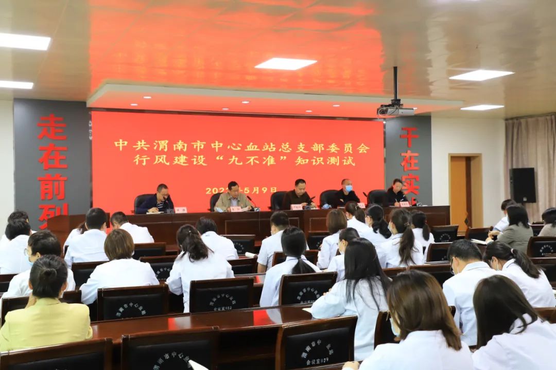 为进一步加强血站行风作风建设,检验“大提升转作风” 专项行动的成效,以“深入了解群众需求,全心全意为献血者和用血者服务”为目标,5月9日上午,渭南市中心血站组织全体干部职工在五楼会议室进行行风建设知识测试。