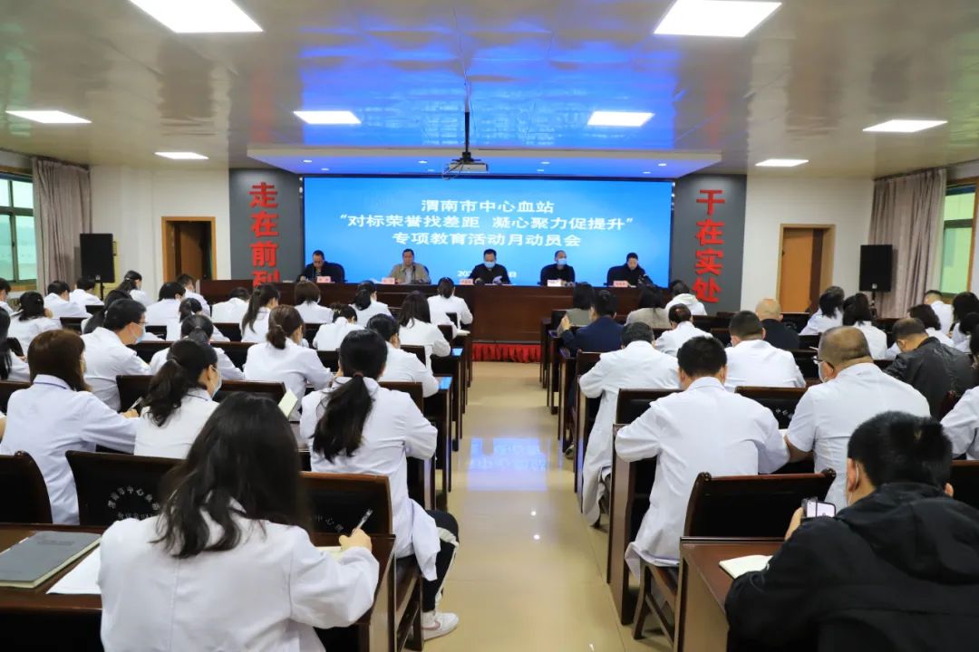 5月9日上午,渭南市中心血站组织召开“对标荣誉找差距 凝心聚力促提升”专项教育活动月动员会,会议由副站长吴剑同志主持,党总支书记、站长严胜利同志做动员讲话,领导班子成员、全体干部职工参加了会议。