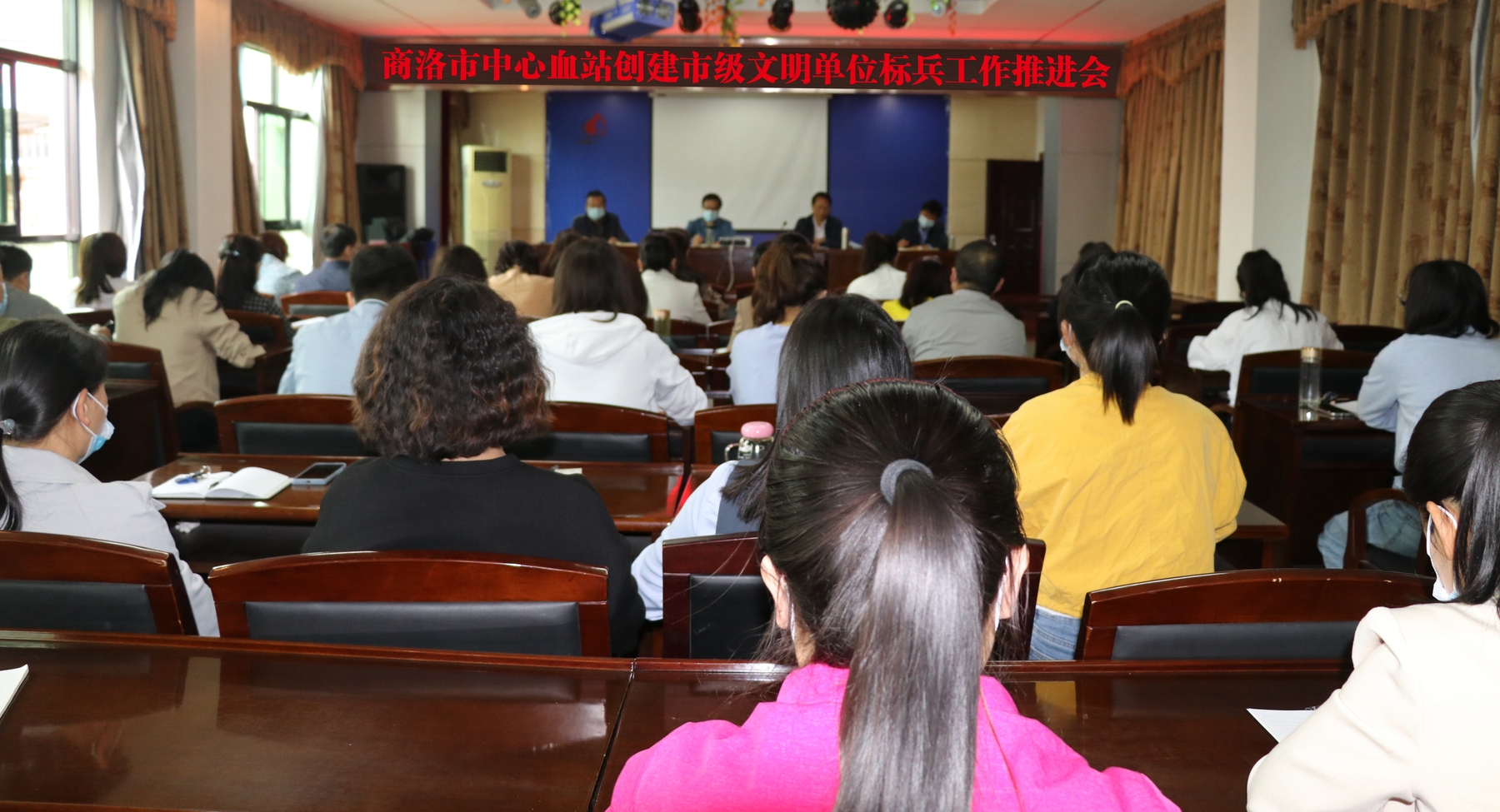 5月16日,商洛市中心血站召开创建市级文明单位标兵工作推进会,动员和组织全体干部职工以饱满的热情,积极投身市级文明单位标兵创建工作当中。副站长、创建工作领导小组副组长李巨性在会上做了推进报告,站长、创建工作领导小组组长袁观成做总结讲话,全站职工参加会议。