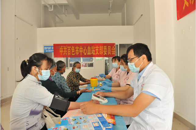 根据中共百色市委办公室《关于加强街道社区党组织与驻区单位、行业、 领域党组织共驻共建互联互动的实施意见》(百办通〔2021〕18号)及中国共产党百色市委组织部关于《推动全市“双报到”党组织和党员开展常态化疫情防控工作的通知》精神,5月12日上午,中共百色市中心血站支部委员会联合中共百色市妇幼保健院委员会、中共百色市爱尔眼科医院支部委员会到百色市右江区龙景街道石龙社区开展义诊进社区、促民族团结”联建联创主题党日活动。