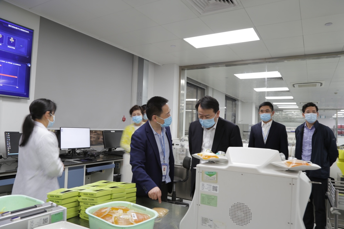 5月16日,浙江省卫生健康委党委书记、主任王仁元一行赴省血液中心调研。王仁元先后参观了中心陈列室、制备供应科、检验科和输血医学研究所,详细了解了区域性血液核酸集中化检测、血液智能化管理、省血液安全研究重点实验室等相关工作,听取了中心负责人的工作汇报,并就下一步更好地推动无偿献血工作提出了要求。