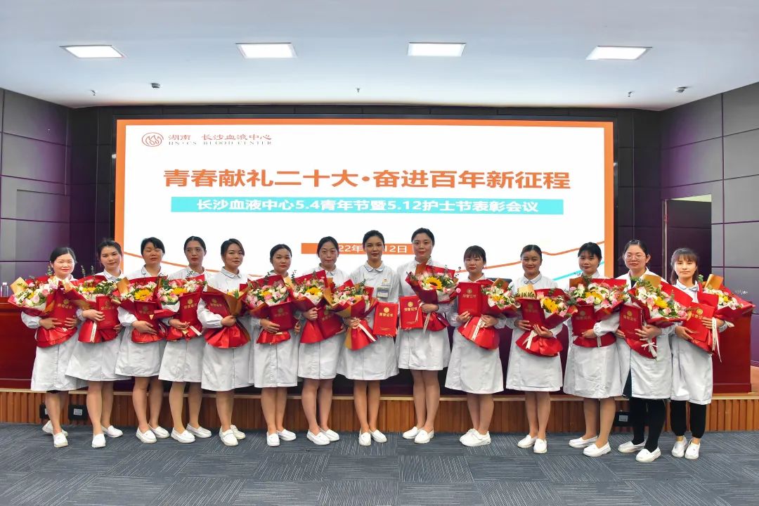 5月12日,长沙血液中心召开五四青年节暨“5·12”护士节表彰大会,中心全体中层以上干部、共青团员、团干部、护理人员参与了此次会议。会上对获得市卫健系统及中心优秀共青团员、团干部、优秀护士等荣誉的28位同志进行了表彰,并通报了2021年度青年大学习全勤人员名单。 中心主任晏永和发表致辞,充分肯定了中心青年队伍、护理队伍对中心事业发展做出的贡献。晏永和表示,在近三年的抗疫工作中,中心护士团队始终坚守护理人的初心,不畏艰险、逆行奋战,多次请战出征采血浆,奔赴株洲、市内各社区支援核酸检测,在疫情防控大考中交出了令人满意的答卷。中心制定出台“十四五”发展规划,血液中心新大楼建设稳步推进,献血点布局优化、整体VI改造方兴未艾,智慧中心建设、业务流程无纸化加速推进……这些成绩的取得离不开中心全体护理人员、团青队伍的努力。他也希望,今后,中心的护理队伍和青年职工能持续努力,共同为争创全国最美、全国一流血液中心作出更大的贡献。