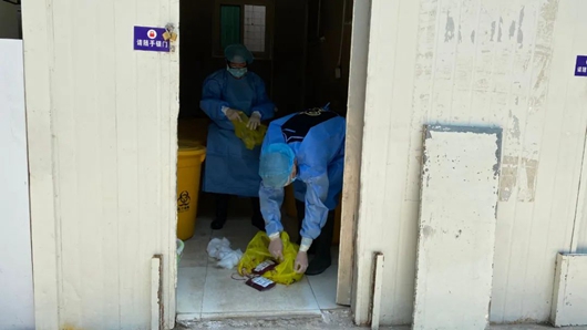 演练中,工作人员将报废血液转移到医疗垃圾暂存点时,为躲避一旁人员,导致医疗垃圾袋被异物划破,一袋报废血液撒漏,工作人员立即通知后勤科科长,说明详细情况,后勤科科长立即报告主管站长并启动应急预案。医疗废物管理人员和后勤科人员第一时间封锁现场,医疗废物管理人员按规定处置撒漏的报废血袋并做好地面的消毒与清洁,通知业务科对现场情况进行评估,符合要求后解除封锁现场,整个演练按照预先制定的方案有条不紊地进行。