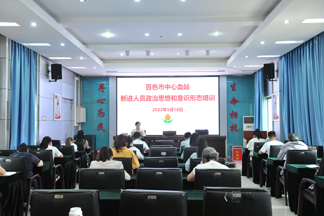 为加强新进职工的职业道德教育和专业技术水平,使其尽快熟悉采供血机构工作流程、规章制度,更好地履行岗位职责,2022年5月18日至20日,百色市中心血站对新进职工进行上岗培训。