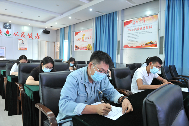 此次培训由血站党支部副书记、副站长覃宁及质量主管黄翔、质量管理科科长关永进、检验科科长马海燕、供血科科长方定安和成分科副科长莫远滢等8位同志,就廉政教育、政治思想教育、意识形态、医德医风、血站文化、血液工作相关法律法规、单位规章制度等内容进行授课。为期三天的培训结束后,新进人员进行了闭卷笔试考核。