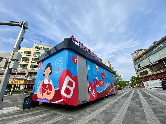 今年年初,市中心血站对献血屋整体形象进行提升改造,外观图案采用手绘的形式,意在更生动形象地向市民传递献血理念。