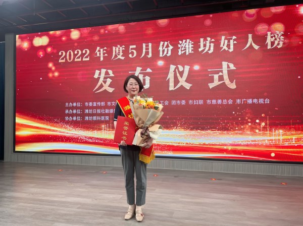 近日,潍坊市委宣传部、潍坊市文明办等单位联合发布2022年度5月份“潍坊好人榜”,潍坊市中心血站待检室主任张静因抢救溺水儿童,成功入选“潍坊好人”,并“潍坊好人榜”发布仪式上作为代表进行典型发言。
