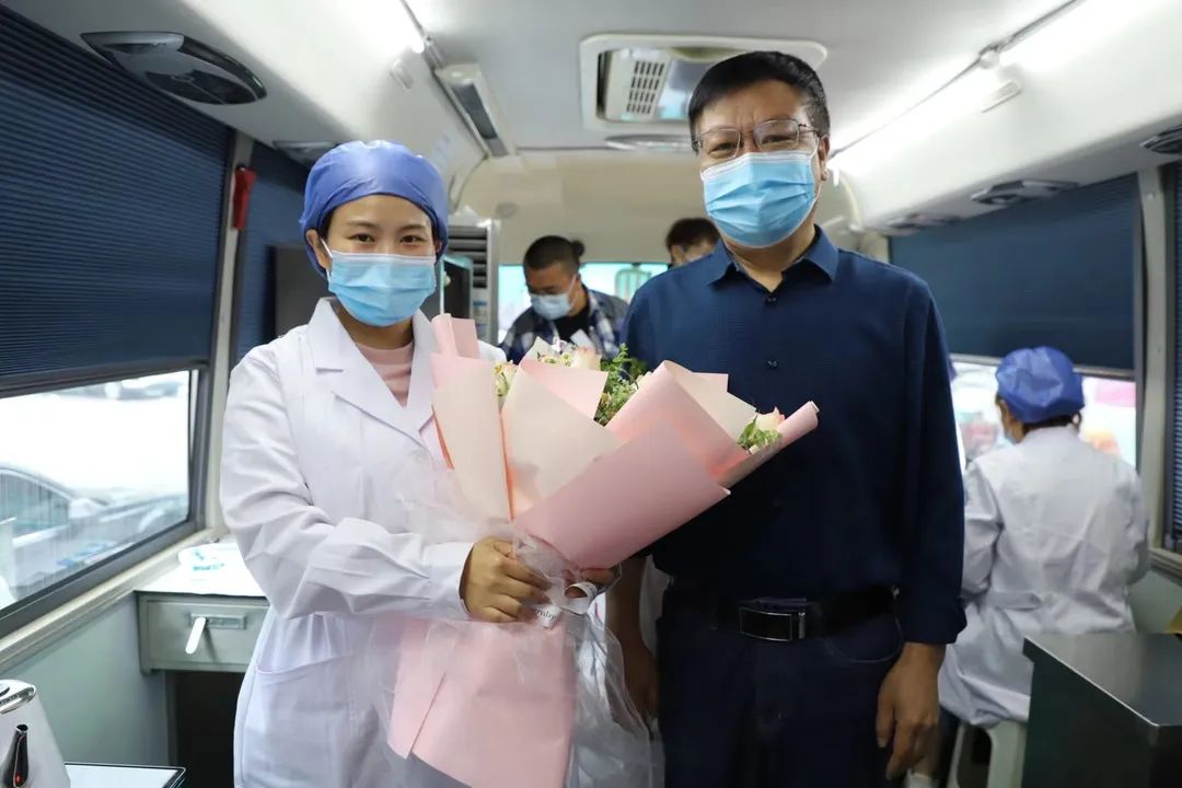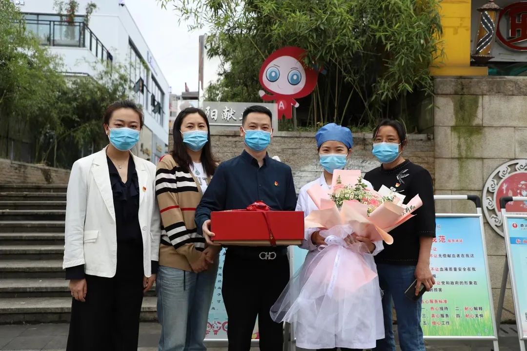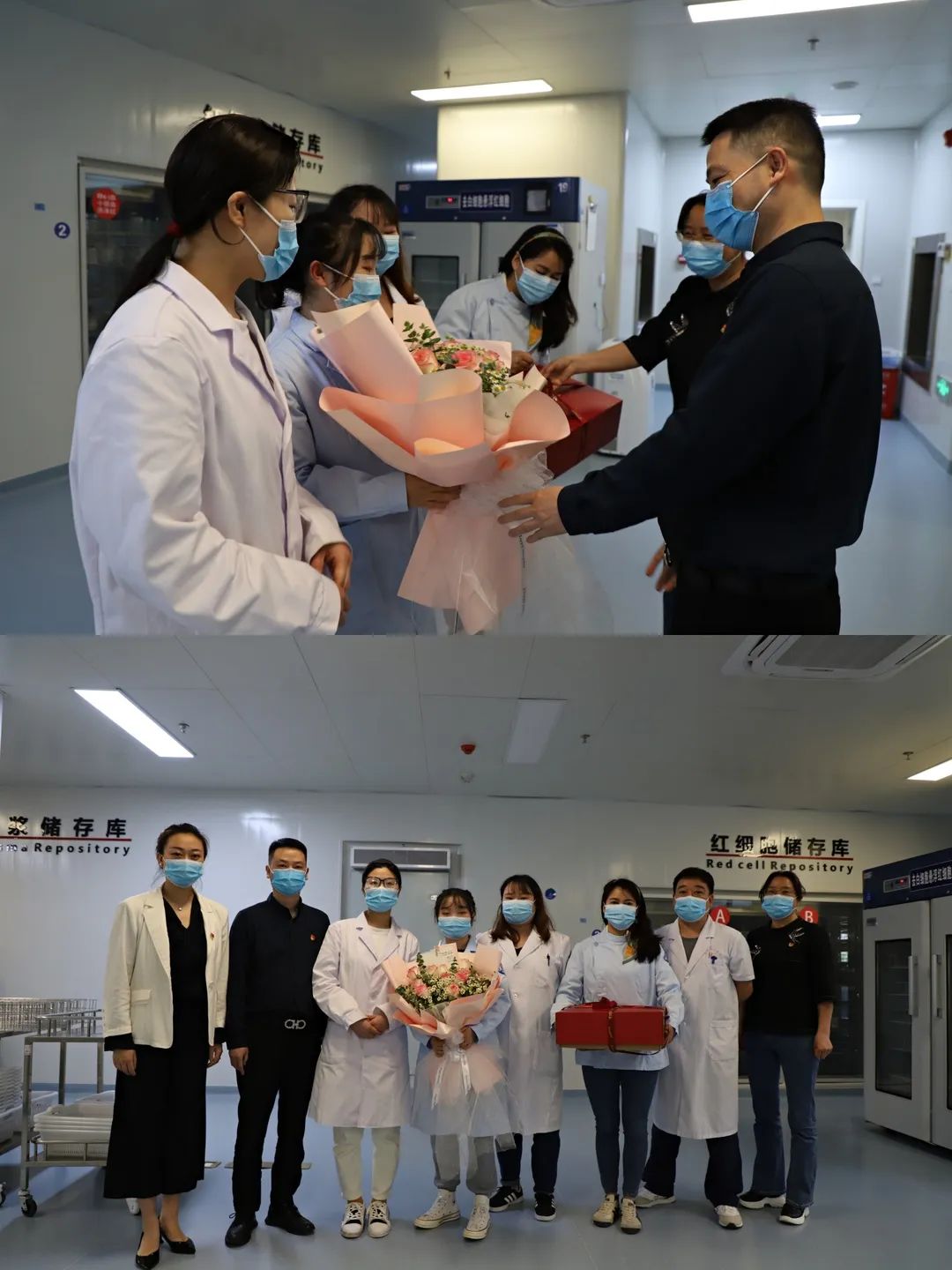 五月花开香满城,2022年5月12日是第111个国际护士节,遵义市中心血站副站长(主持工作)张承伟、副站长付友恒分别带队,深入一线业务科室和绥阳县、红花岗区、播州区等6个献血屋及遵义航天职业技术学院团采现场,为坚守岗位的护理人员送上节日的祝福和问候。
