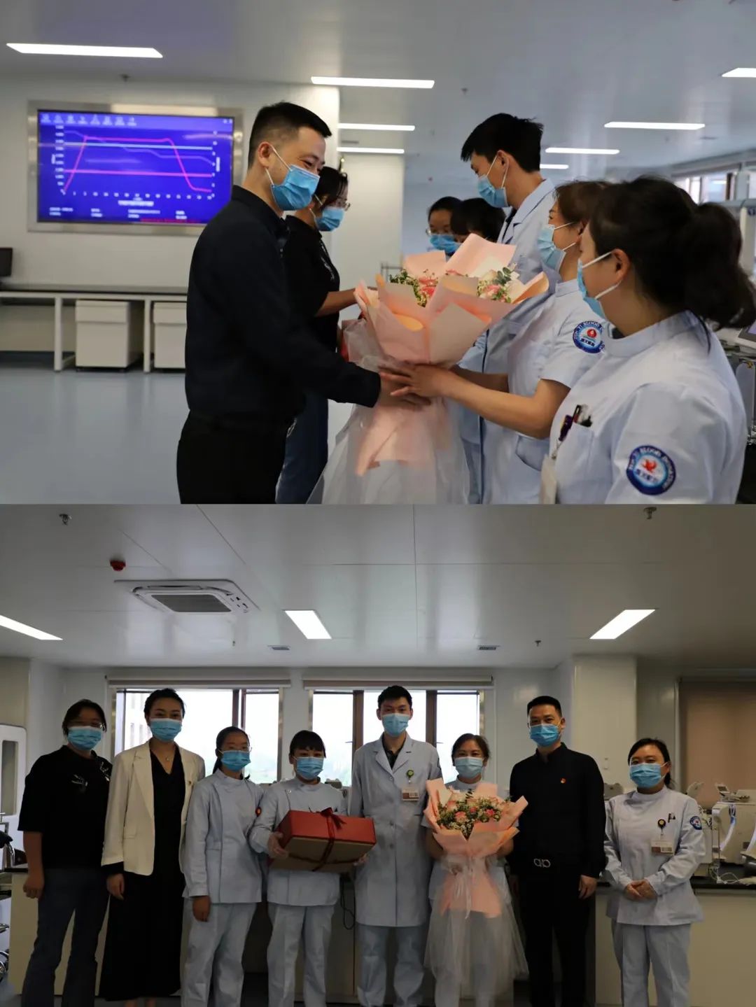 慰问中,站领导将精心准备的鲜花、手绘贺卡和果篮送到护理人员手中,向大家致以节日的祝福和诚挚的问候。同时,对大家在疫情防控常态化工作中,白衣执甲,迎难而上,全力保障全市医疗用血作出的积极贡献予以了高度赞扬并致以崇高敬意。