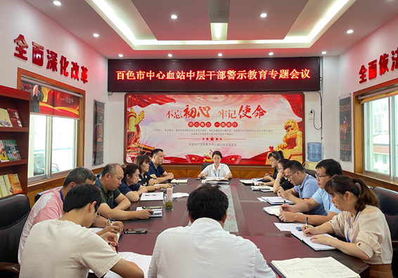 会上通报了百色人大常委会原副主任黄志愿严重违纪违法案件,通过对案件的剖析,警示教育与会党员干部以案为鉴、警钟长鸣,进一步提升遵纪守法意识,严于律己、廉洁齐家,以清正廉洁作为永恒要求,丹心为民作为初心使命,纵深推进清廉血站建设。