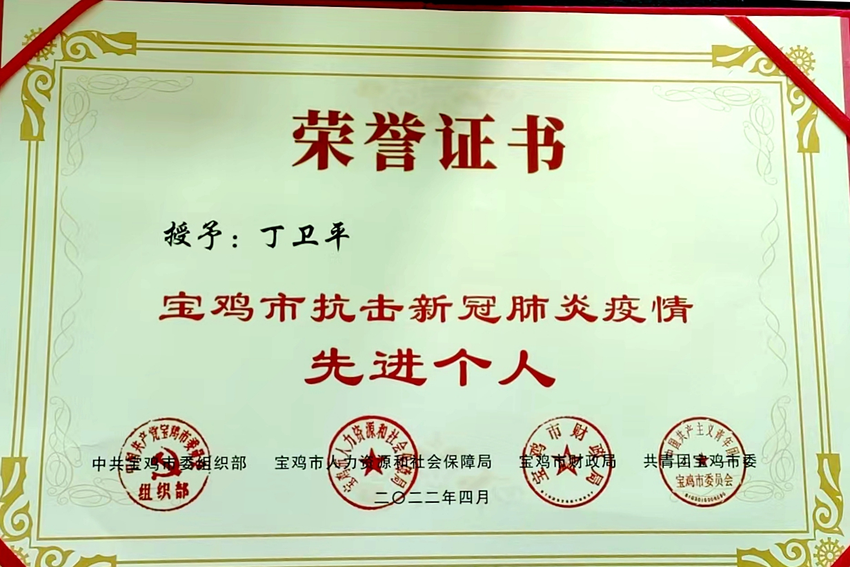 近日,宝鸡市中心血站业务科科长丁卫平同志被评为宝鸡市抗击新冠肺炎疫情先进个人,由宝鸡市人力资源和社会保障局给予嘉奖。2022年,对宝鸡市中心血站来说,极不平凡。受疫情影响,人们外出和流动减少,街头无偿献血随之减少,全市临床用血面临极大挑战。