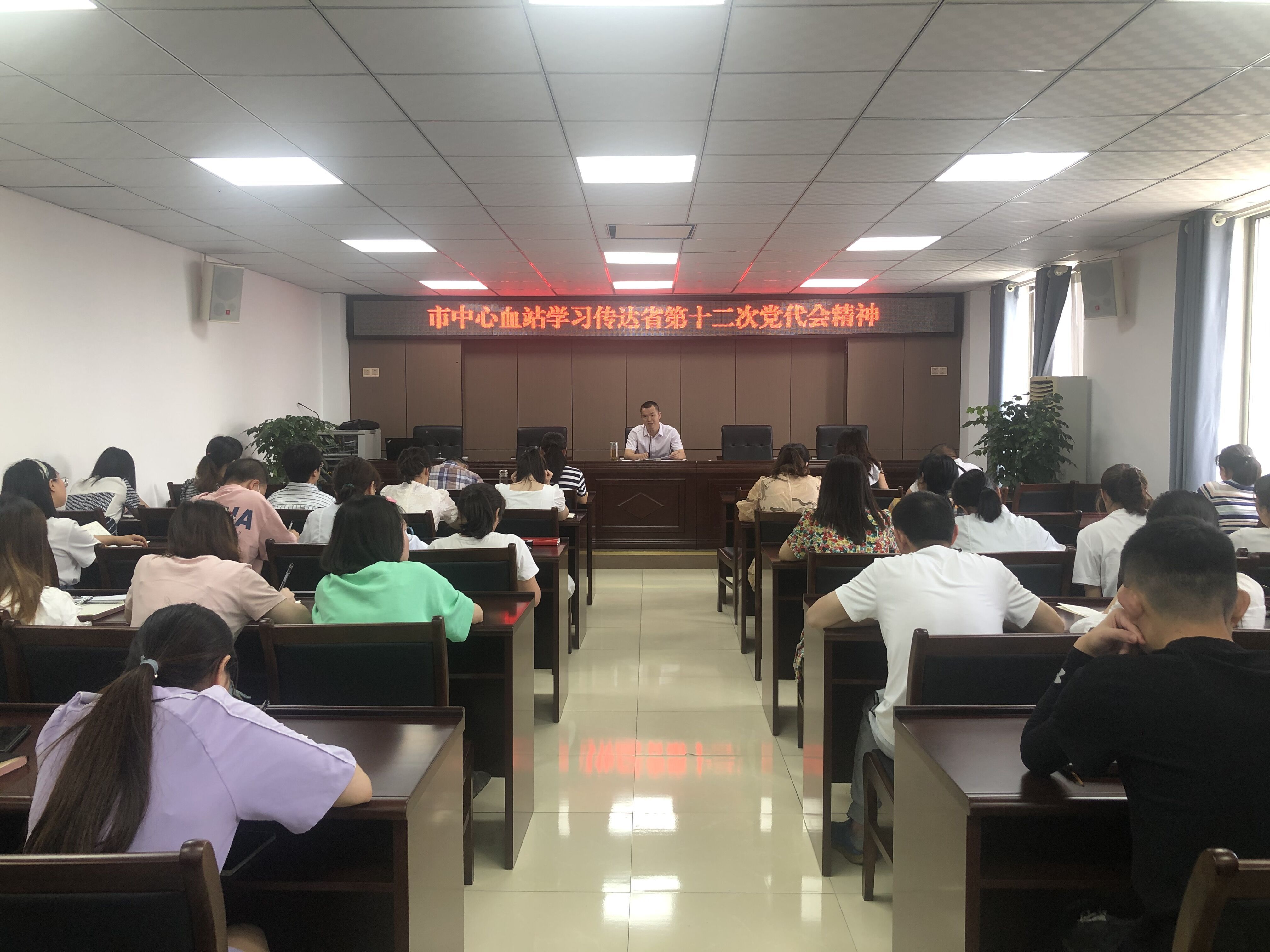 6月6日,资阳市中心血站召开干部职工大会,深入学习传达四川省第十二次党代会精神,安排部署血站下一步工作。党支部书记、站长都刚主持会议并讲话,全体干部职工参加会议。