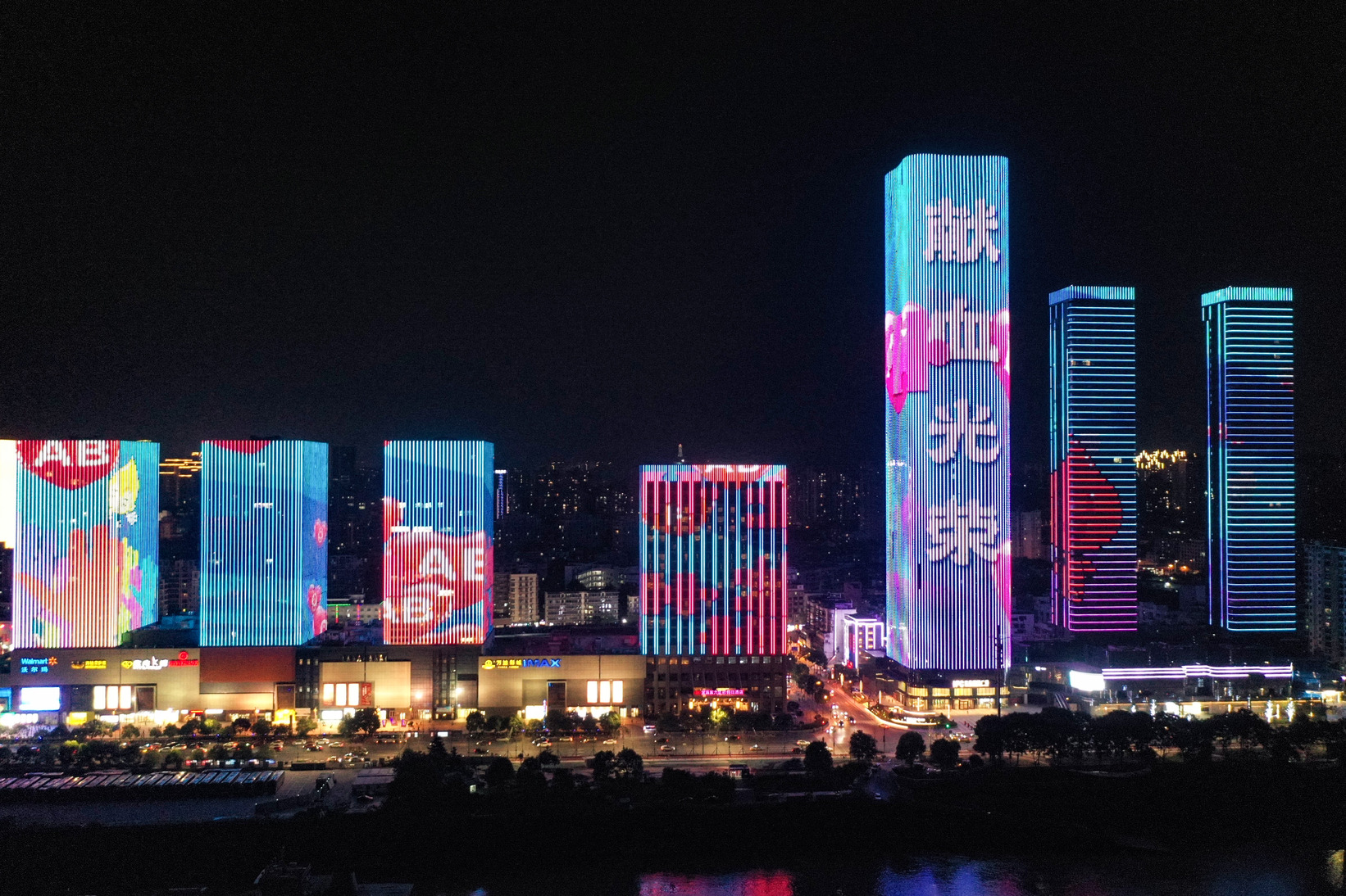 致敬的话语滚动闪烁,好似星光点点相连,就像献血者们献出的汩汩爱心,点亮了患者生命的希望。
