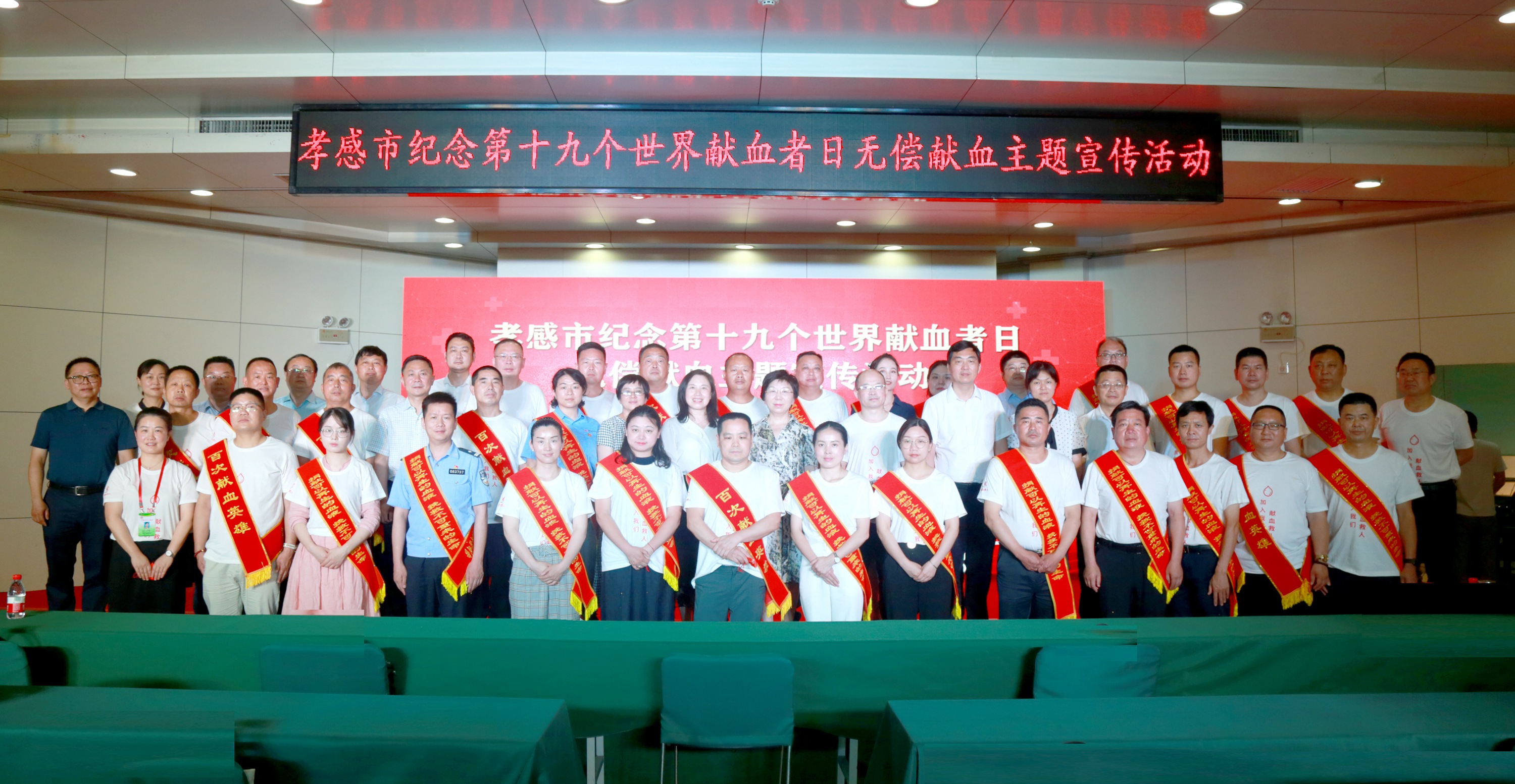 6月14日,是第十九个“世界献血者日”,活动主题是“献血是一种团结行为。加入我们,拯救生命!”当日下午,孝感市纪念第十九个世界献血者日主题宣传活动在市中心血站举行。市政府副市长吴婕、市政府副秘书长林成儒、市委宣传部副部长彭爱平、市卫健委主任蔡凤珍、市红十字会党组书记胡新平,还有各个县(市、区)卫健局、红十字会主要负责人,以及无偿献血先进单位代表、先进个人代表、百次献血者代表齐聚一堂,纪念和庆祝这个特殊的节日。