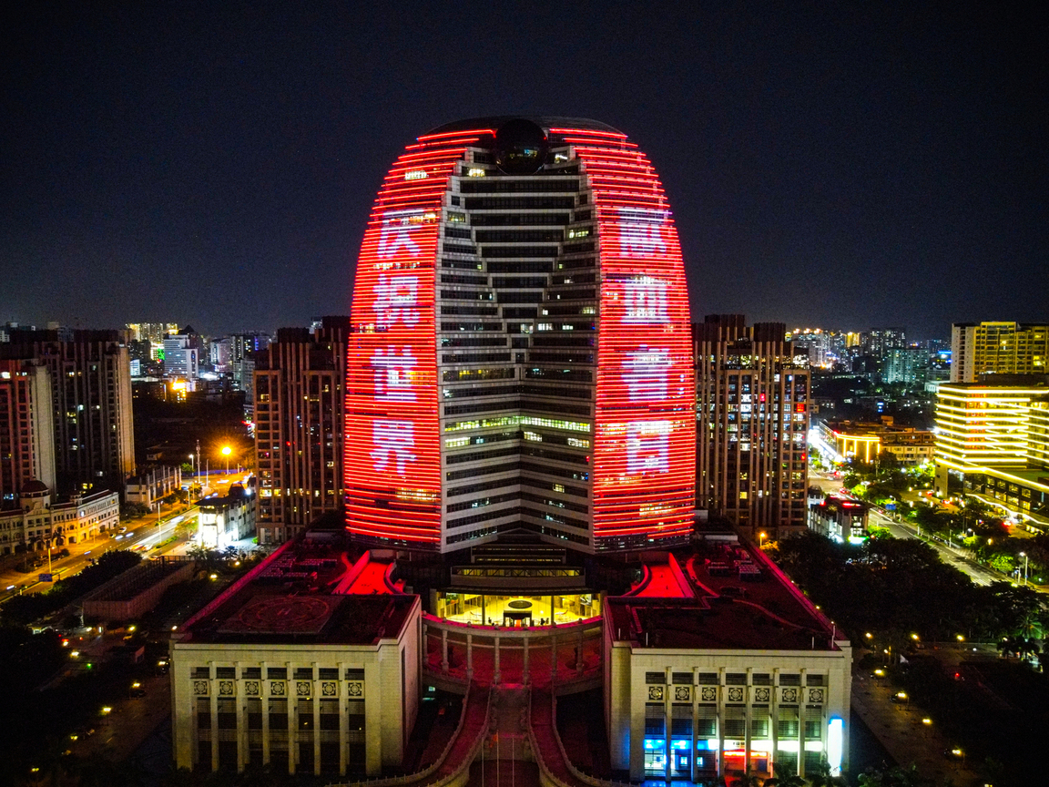 当晚,海口、三亚、儋州海花岛等地标性建筑同时为无偿献血者而亮,以“献血是一种团结行为。加入我们,拯救生命”、“庆祝世界献血者日”等口号为主题的灯光秀以及户外大屏广告同步滚动播出,东南西北中遥相辉映,渲染出梦幻般的色彩,用属于献血者的红,点亮了琼岛的夜空。