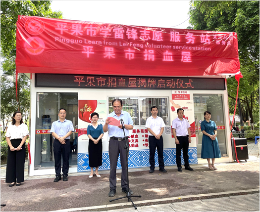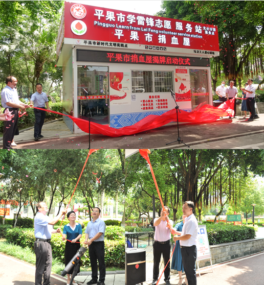 为了提升平果市采供血能力、切实为民办实事、助力精神文明建设,在百色市委、市人民政府的有序推动和平果市委、市人民政府的精心筹备下,6月9日上午11时,平果市学习雷锋志愿服务站——平果市捐血屋正式启用仪式在平果市文化公园内举行,向全市宣告平果市也有自己的捐献屋啦!