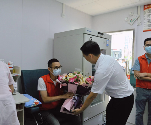 启用仪式结束后,出席活动的领导参观了平果市捐血屋,并向在平果市捐血屋参加无偿献血的群众送上慰问鲜花。