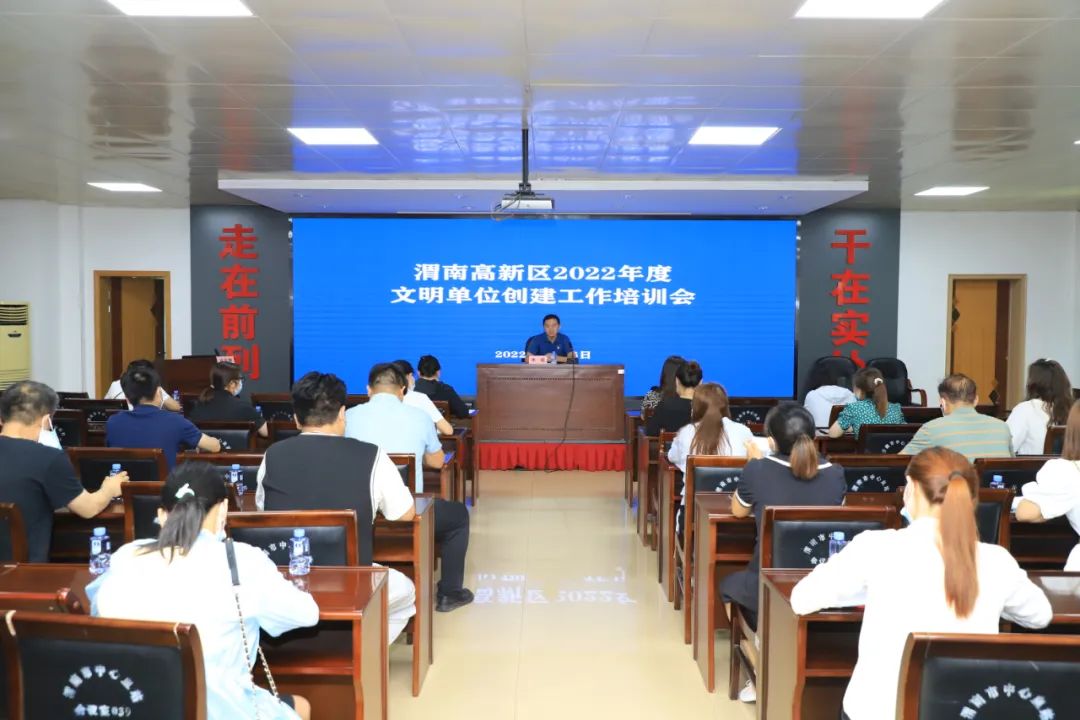为进一步深化群众性精神文明建设、持续推动精神文明建设先进集体创建工作制度化、规范化、常态化,6月16日下午,渭南市高新区文明办在血站五楼多功能厅召开了2022年度市级、区级精神文明建设先进集体创建工作培训会,高新区申创单位及各街道、金城社区创建分管领导等30余人参加培训。会议由高新区党群工作部副部长李超主持召开。