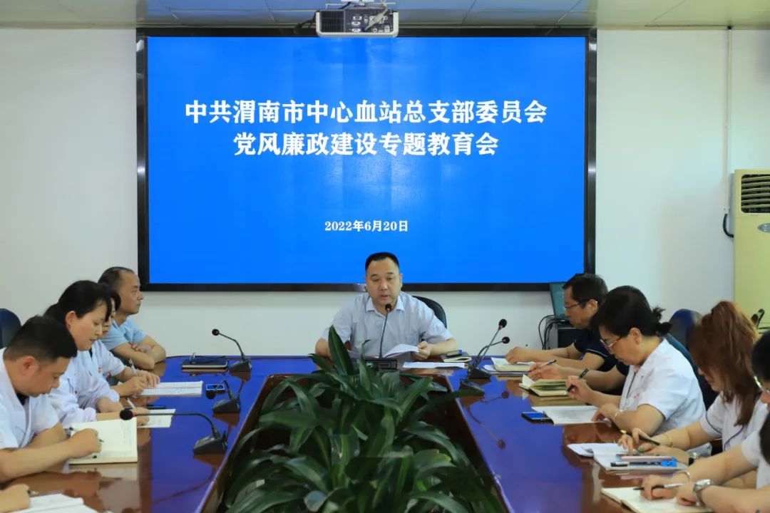 为深入推进清廉血站建设,推动落实中央八项规定精神纠“四风”树新风工作,全力开展党风廉政教育月活动,6月20日上午,渭南市中心血站召开党风廉政建设工作专题会议。党总支书记、站长严胜利主持会议,全体党员干部参加会议。