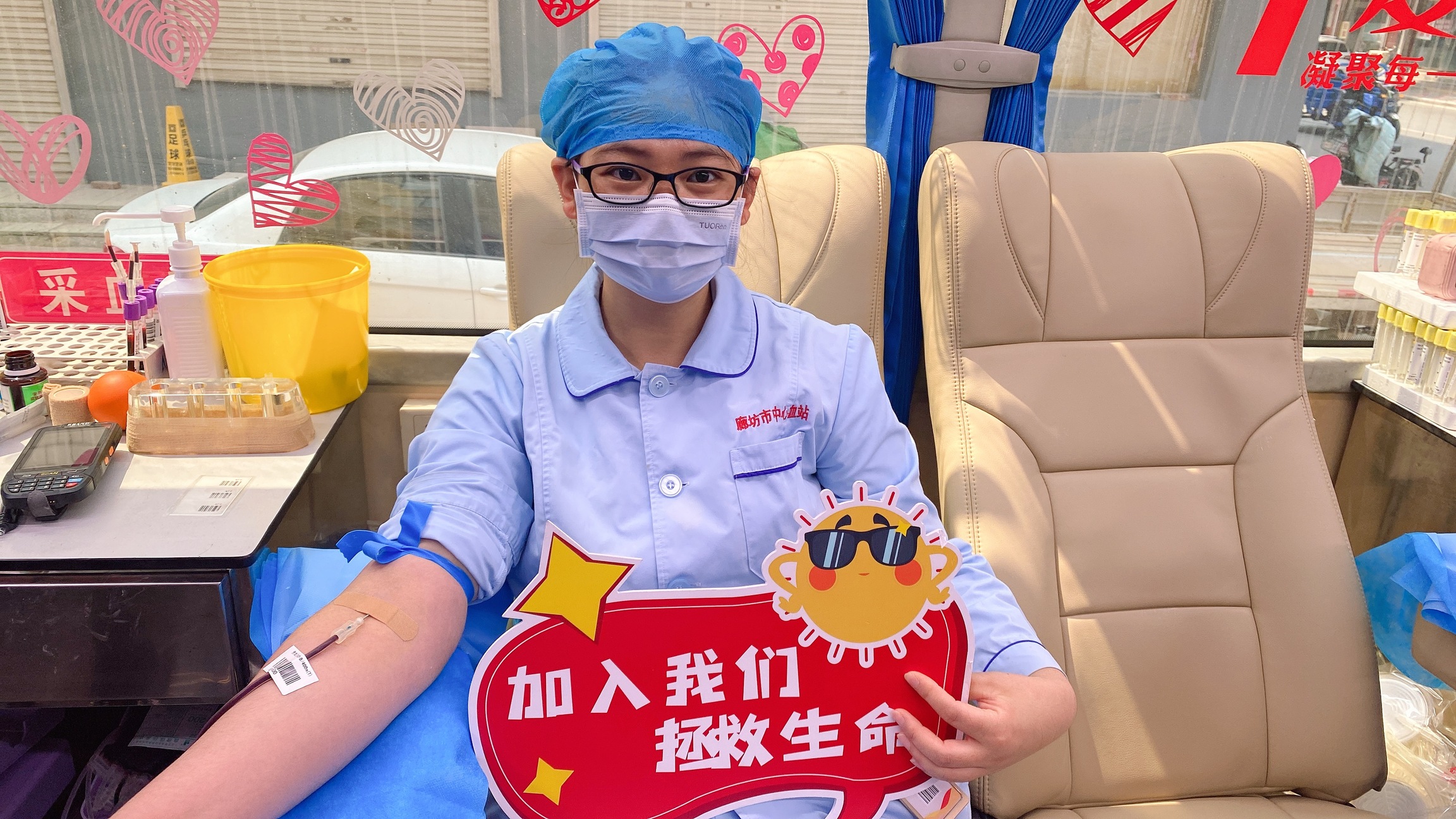 廊坊市中心血站外采科护士解巧钵,一名退伍军人,她在完成今日的团采工作后,也加入到献血活动中,瞬间完成角色的转换,前一刻,认真履行工作岗位所赋予的职责,后一秒,在奉献中发现快乐的源泉,在无偿献血公益事业中,她以身作则宣传无偿献血,彰显了一名共产党员、一名医务工作者的无私奉献情怀,弘扬着社会正能量。