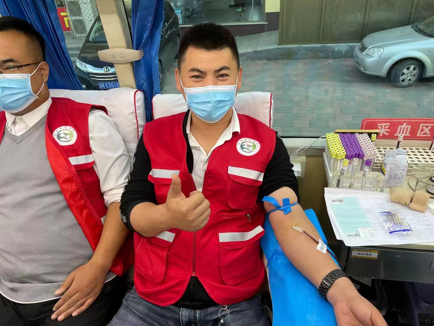 早上9点活动正式开始,爱心商会多名志愿者已经早早来到活动现场,献完血后没有过多的休息,立即投入志愿服务工作在采血车前维持活动秩序,配合血站工作人员做好献血前征询工作。