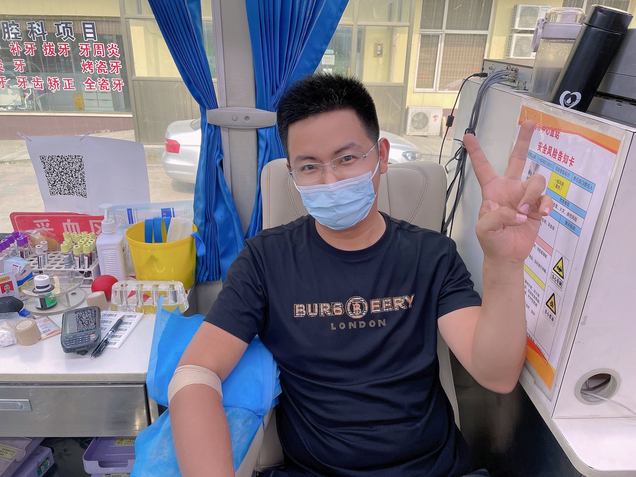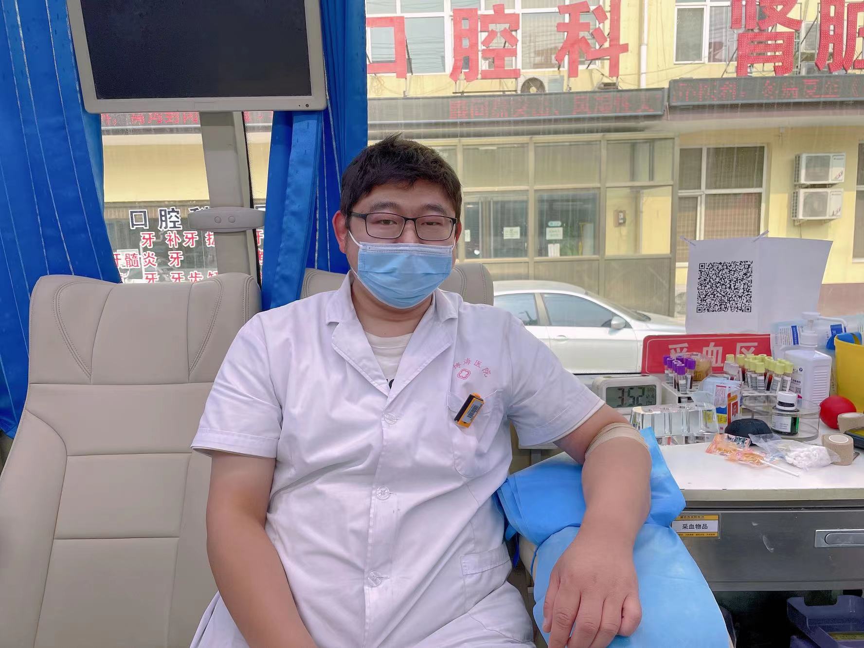 鸿升博海医院医生王正第一次献血,他说:“今天是我的献血初体验,感觉还不错。没有想象中那么疼,今后我会继续参加献血活动,作为一名医生也希望用献血的方式帮助更多的人。”在他的鼓励下同事张洪刚也成功献血400毫升。
