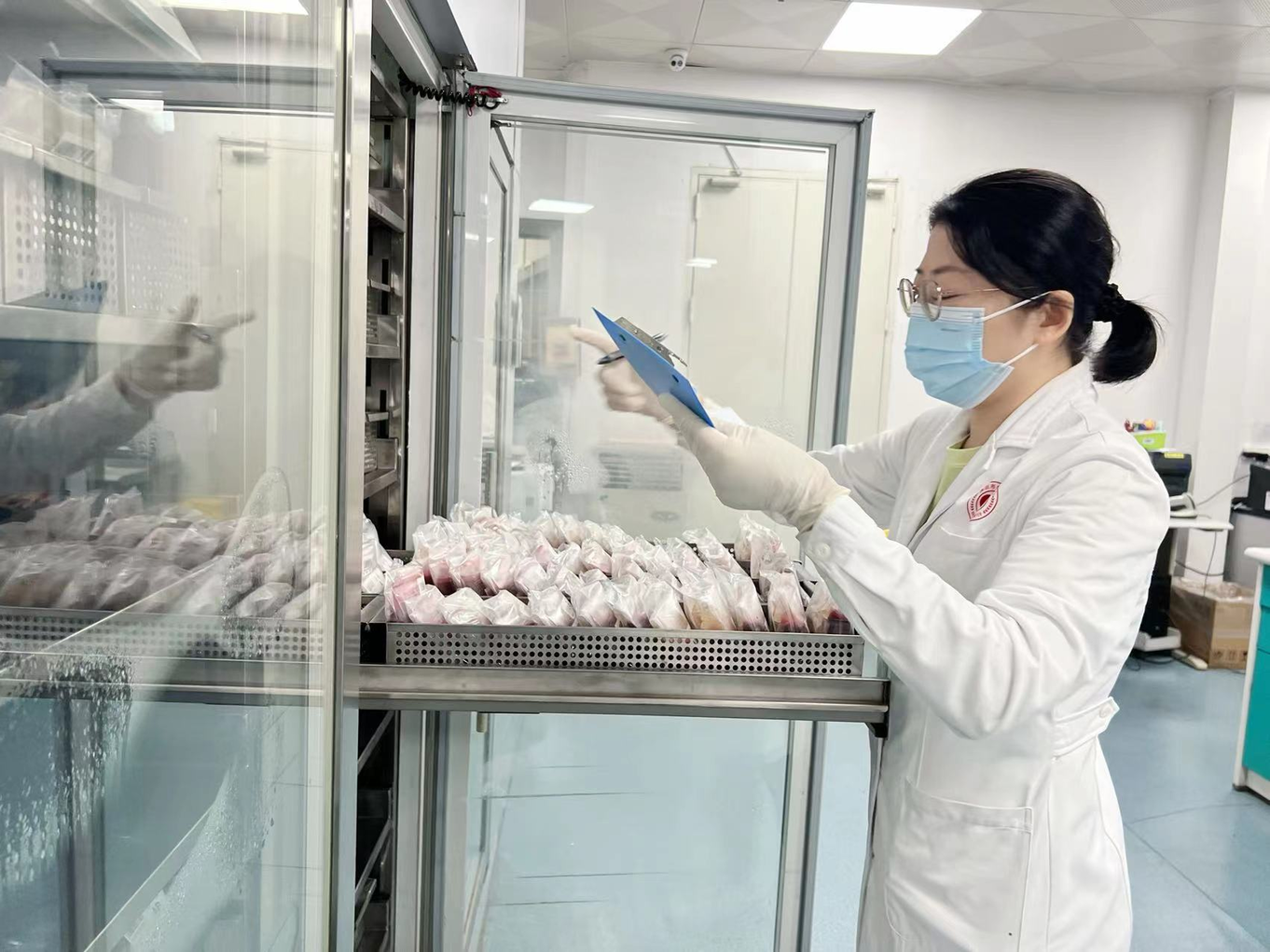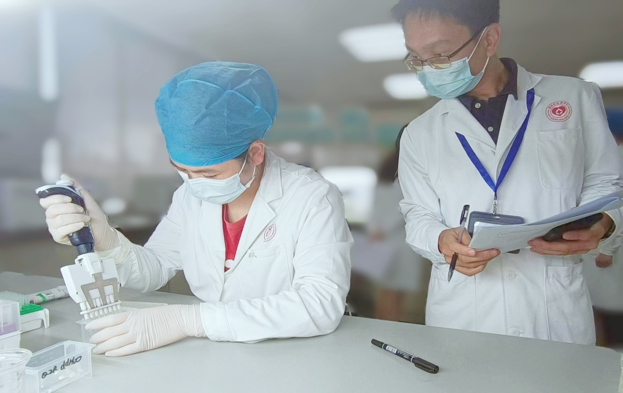 输血医学研究所——日常工作中经过千锤百炼的加样技能,风驰电掣一般快速加样。移液器的枪尖似被她施加了魔术,取液时似彗星划过天际一般灵动,移液时又似钟表分针跳动一般秩序凛然,严谨与干练相融合的手法,一呼一吸之间没有一丝一毫多余的动作。