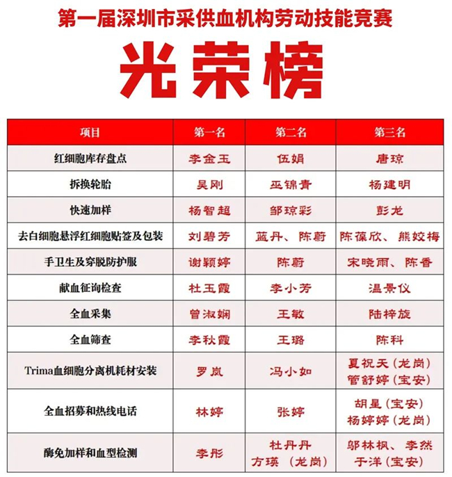 为提高深圳市采供血机构工作人员业务水平和服务质量,强化技能操作规范,掀起岗位练兵热潮,促进血液事业高质量发展,今年5月,深圳市血液中心牵头组织,联合宝安区中心血站、龙岗区中心血站举办“第一届深圳市采供血机构劳动技能竞赛”,三家血站129名职工参与,涵盖了7个科室、11个竞赛项目。这次劳动竞赛是三家采供血机构首次同台竞技的创新举措。