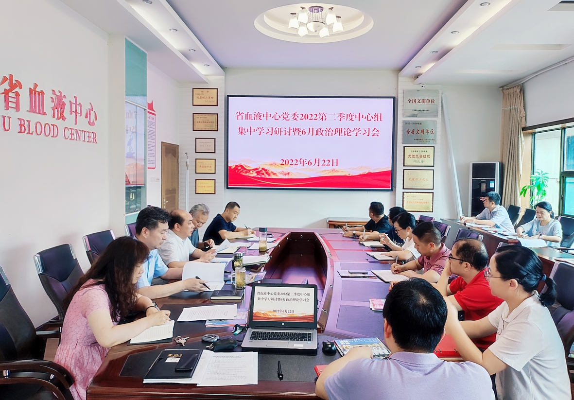 6月22日,贵州省血液中心党委召开2022年第二季度理论学习中心组集中学习研讨暨6月政治理论学习会。中心党委书记朱思刚主持会议并专题宣讲省第十三次党代会精神。
