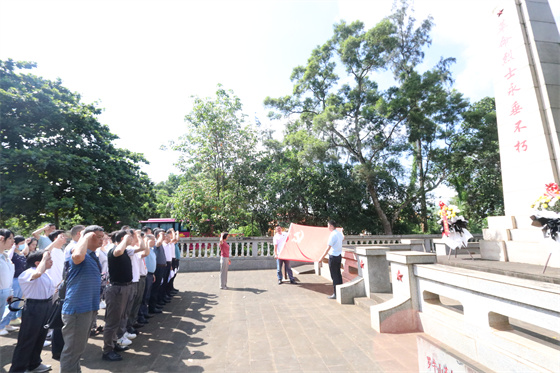 在罗牛山革命烈士纪念碑前,中心党委委员、副主任林彩风同志带领党员面向鲜艳的党旗,发出铮铮誓言,重温入党宣誓时的庄严承诺和入党决心,感悟革命先烈不畏艰难、浴血奋战的精神。
