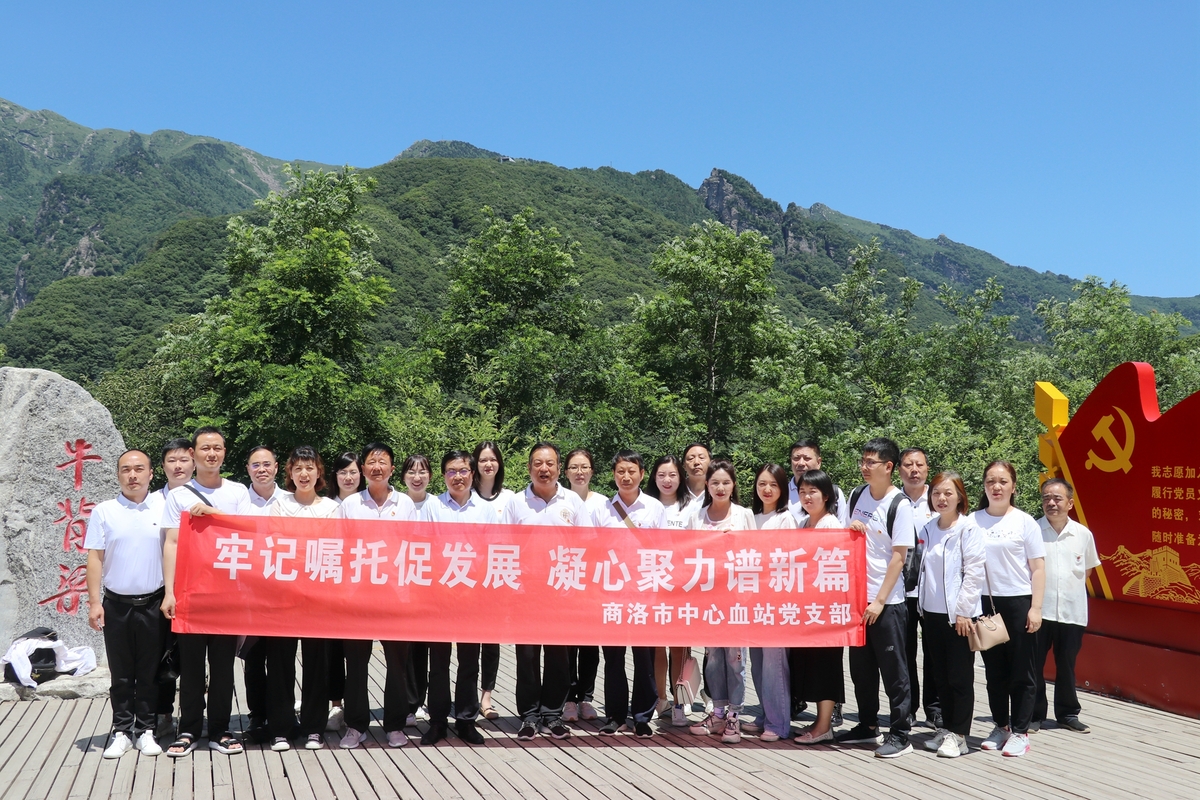 为庆祝中国共产党成立101周年,喜迎党的二十大胜利召开,6月29日,商洛市中心血站党支部组织党员干部赴柞水县干部培训基地牛背梁和金米村,开展“牢记嘱托促发展·凝心聚力谱新篇”主题党日活动,重温习近平总书记重要讲话重要指示精神,牢记责任担当,增强工作干劲,凝聚进取力量。