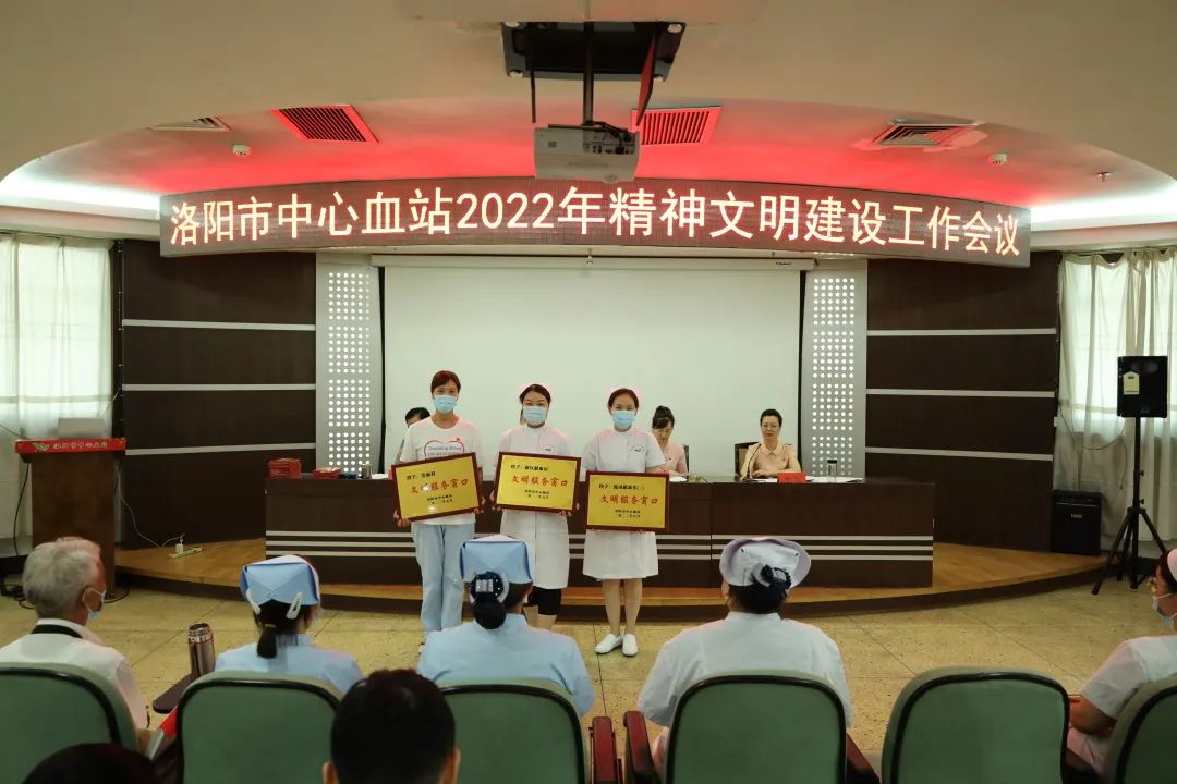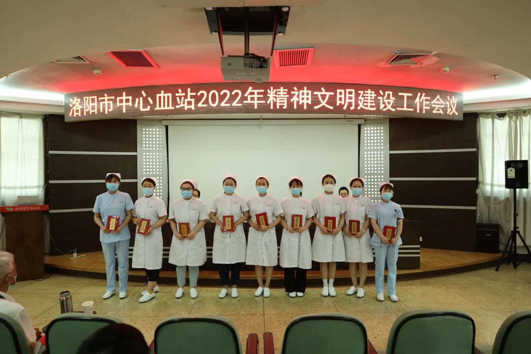 会上,李雯同志对洛阳血站2022年上半年精神文明建设工作进行了回顾和总结,朱丽莉同志宣读了《洛阳市中心血站关于对2021年度优秀护士进行表彰的决定》,刘君胜同志宣读《洛阳市中心血站关于对2021年度文明服务窗口进行表彰的决定》,为获奖的集体和个人颁奖。