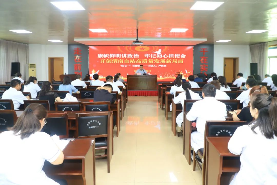 为庆祝党的第101个生日,6月30日,渭南市中心血站根据“庆七一”系列庆祝活动相关工作安排,组织全体党员干部开展了以“旗帜鲜明讲政治,牢记初心担使命,开创血站新局面,共迎党的二十大”为主题的书记讲党课活动。