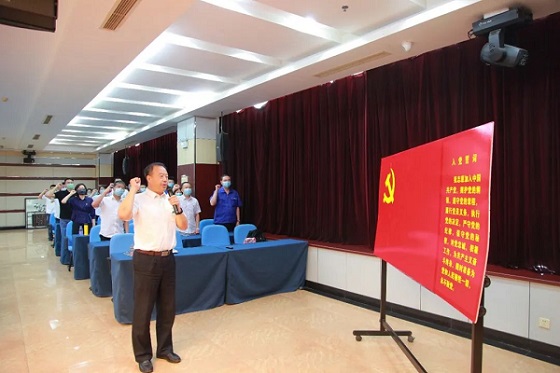 中心党委书记、主任张荣江带领全体党员重温入党誓词