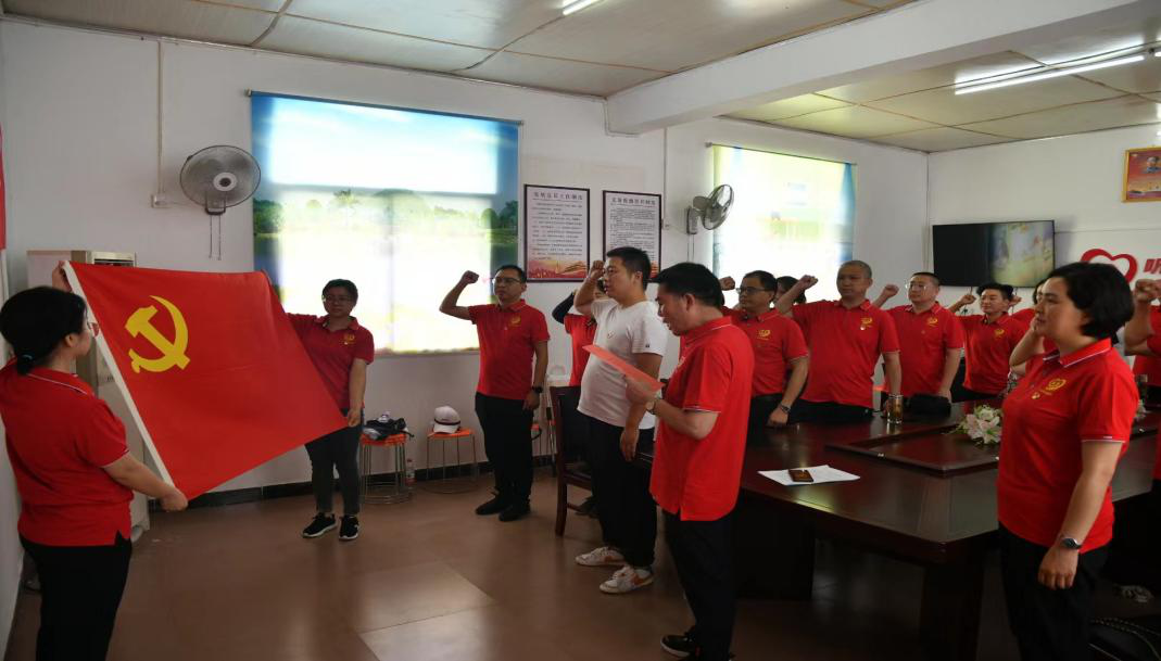 在乡村振兴结对帮扶龙井村,党员干部重温入党誓词。