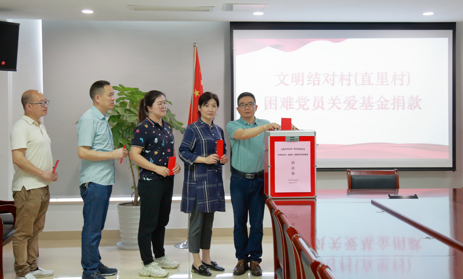 蒋堂镇直里村是我站长期共建的“双万结对、共建文明”单位。在之前与村委会交流过程中,站党支部了解到:直里村83位党员中一半年龄在60岁以上,有多位因病因灾或其他原因所致的生活困难党员,他们迫切需要党组织的关怀和帮助。虽村里设立了“困难党员关爱基金”,但因村集体无实体经济,人口老龄化严重,关爱基金存在一定缺口。与村委会进一步沟通后,站党支部发起为直里村困难党员关爱基金募捐倡议,全体在职党员积极响应,一致表示要为村基金尽一份心,添一份力,送上血站党支部对困难党员的深情关爱,全站共募集关爱资金3100元。