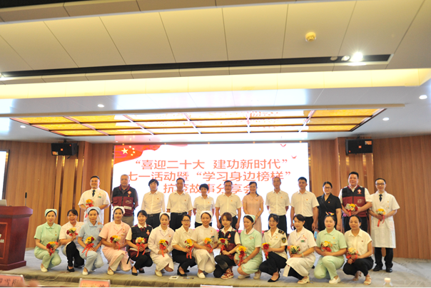 7月8日上午,百色市中心血站党支部副书记、副站长覃宁同志带队参加了在百色市人民医院召开的市直卫生健康单位七一活动暨抗疫故事分享主题活动。