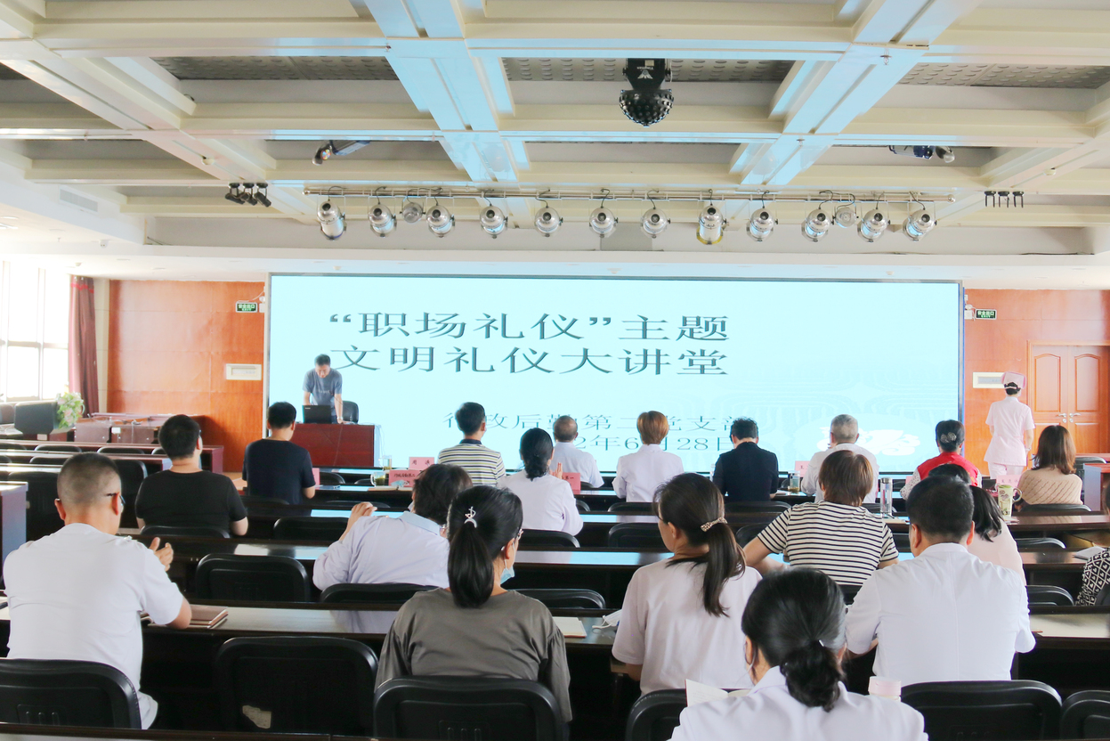 2022年6月28日,太原市血液中心党委结合《太原市文明行为促进条例》创城创卫与中心采供血工作实际,举办以“职场礼仪”为主题的文明礼仪大讲堂活动,由行政后勤第二党支部承办。