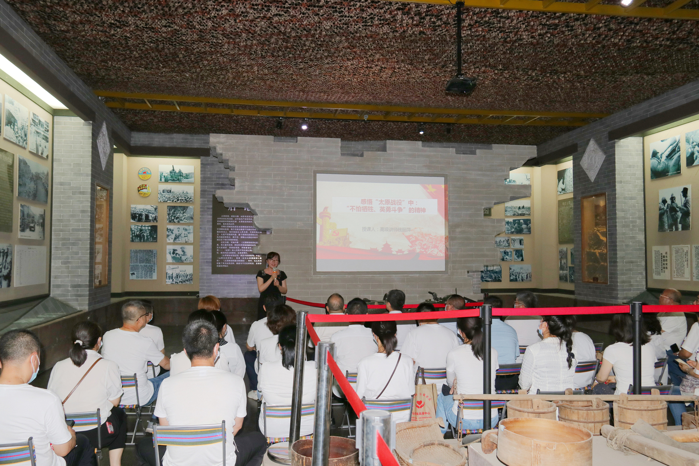 祭扫活动后,在黄坡革命烈士陵园薛永飞主任的现场教学、讲解下,中心党员干部参观了展览一厅、展览二厅。通过一幅幅英雄烈士的历史图片和一件件实物,了解了太原战役的悲壮历程,深切感受到太原战役取得胜利的来之不易。
