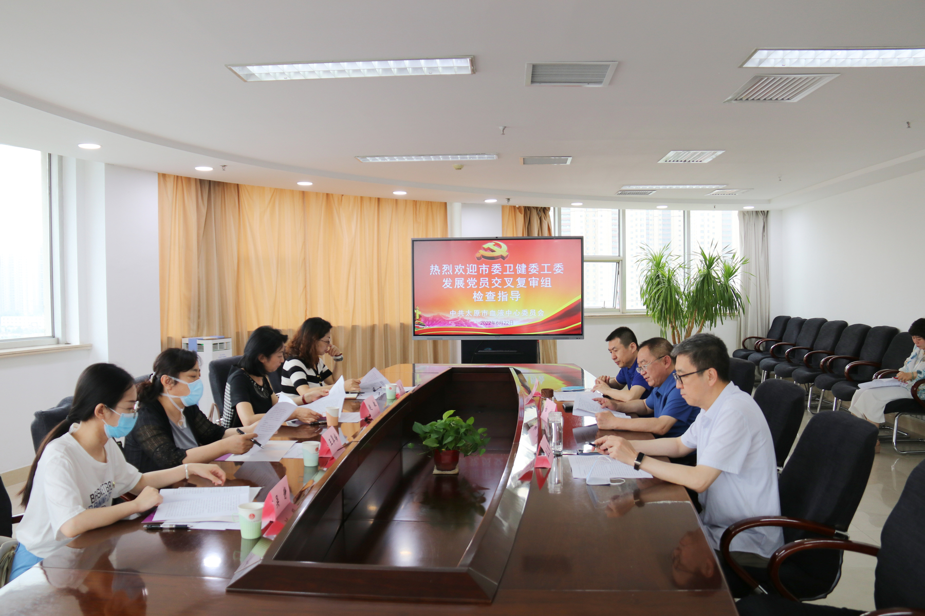 为进一步做好2022年度发展党员工作,加强委直各单位党组织之间发展党员工作的交流学习,按照市委卫健委工委《关于开展2022年度发展对象交叉复审的通知》要求,6月22日上午,太原市第三人民医院党委书记赵敏,宣传部长李凌,护理教研室主任第二党支部支部书记王翠梅,人组部干事吴静一行4人,来到我中心对2022年度中心发展对象进行复审检查。中心党委书记、主任白林,中心副主任王卫东,党群工作科科长武锦慧以及发展对象所在支部书记、培养联系人、党员代表、科室负责人及科室代表等参加此次复审。