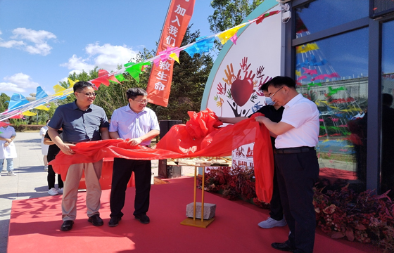赤峰市卫健委副主任郝亚杰、克旗旗委常委、旗人民政府副旗长丛日敏、赤峰市中心血站党支部书记、站长王鹏坤、克旗卫健委主任王武同志4位领导为无偿献血爱心基地揭牌。