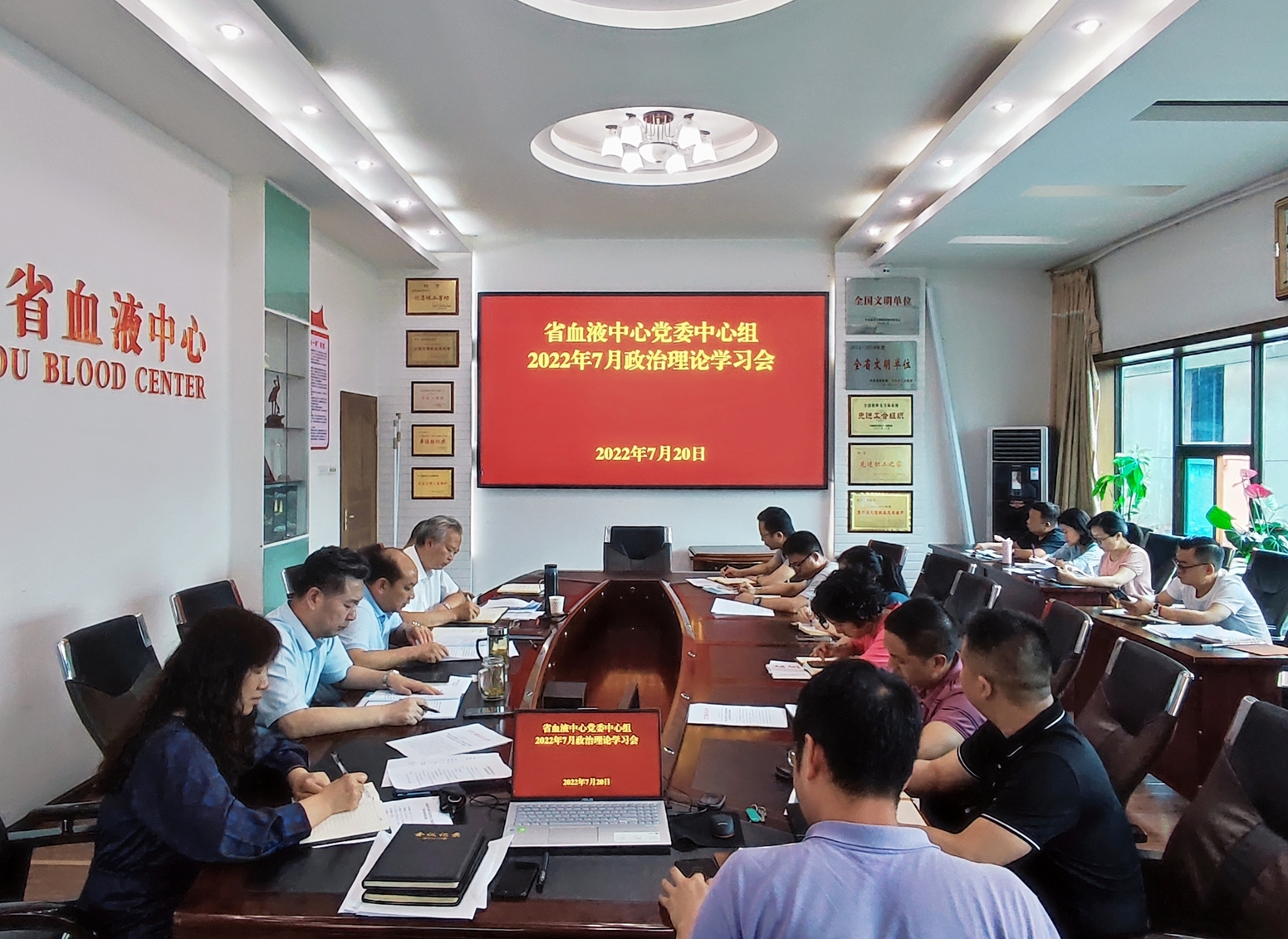 2022年7月20日,省血液中心举行党委中心组2022年7月政治理论学习会,专题学习贯彻习近平总书记近期重要讲话、重要指示批示精神,传达学习近期重要会议和文件精神,学习相关制度条例内容,开展安全生产、消防安全专项培训和警示教育。结合实际研究贯彻落实工作,部署安排中心近期重点工作任务。中心党委书记朱思刚主持会议并讲话,中心领导班子成员出席会议。
