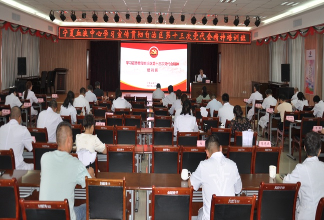 为扎实推进学习宣传贯彻自治区第十三次党代会精神走深走实,7月13日至19日,宁夏血液中心举办了学习宣传贯彻自治区第十三次党代会精神培训班,中心全体在职党员、入党积极分子、副科级以上干部参加了培训。