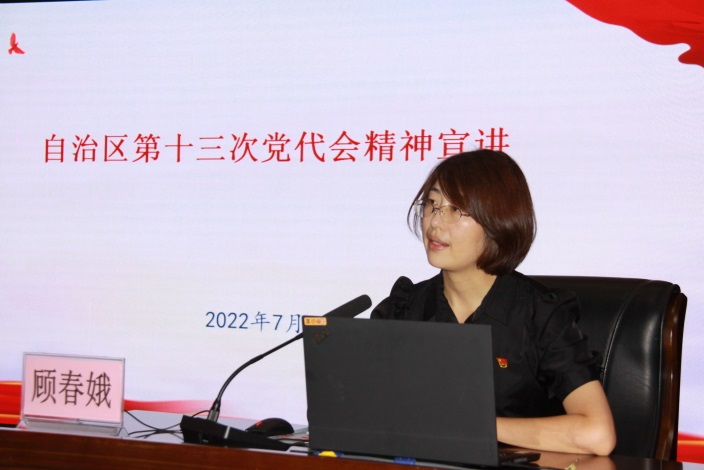 各党支部党员交纳7月党费后,自治区第十三次党代会代表、自治区第四人民医院护理部副主任顾春娥同志结合参会所见、所感、所学,就自治区第十三次党代会的主题主线、五年来宁夏发展取得的重大成就、今后五年宁夏发展的总体要求和总体部署、今后五年宁夏发展的重点工作和具体举措等四方面,对自治区第十三次党代会精神和工作报告中确定的卫生健康各项工作任务进行了解读。宣讲主题鲜明、内涵丰富,对教育引导全体党员干部学深悟透自治区第十三次党代会精神具有很强的针对性、指导性。